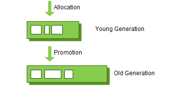 위의 두 가설을 합쳐 'weak generational hypothesis'라고 칭합니다. 이 가설들의 장점을 극대화하기 위해 HotSpot VM에서는 2개의 물리 공간으로 나눴습니다. Young, Old입니다.