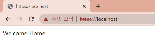 https로 redirect된 것을 확인할 수 있습니다. 주의 요함이 뜨는 이유는 정식으로 만든 SSL이 아닌 저희가 임의로 만든 SSL이기 때문입니다.