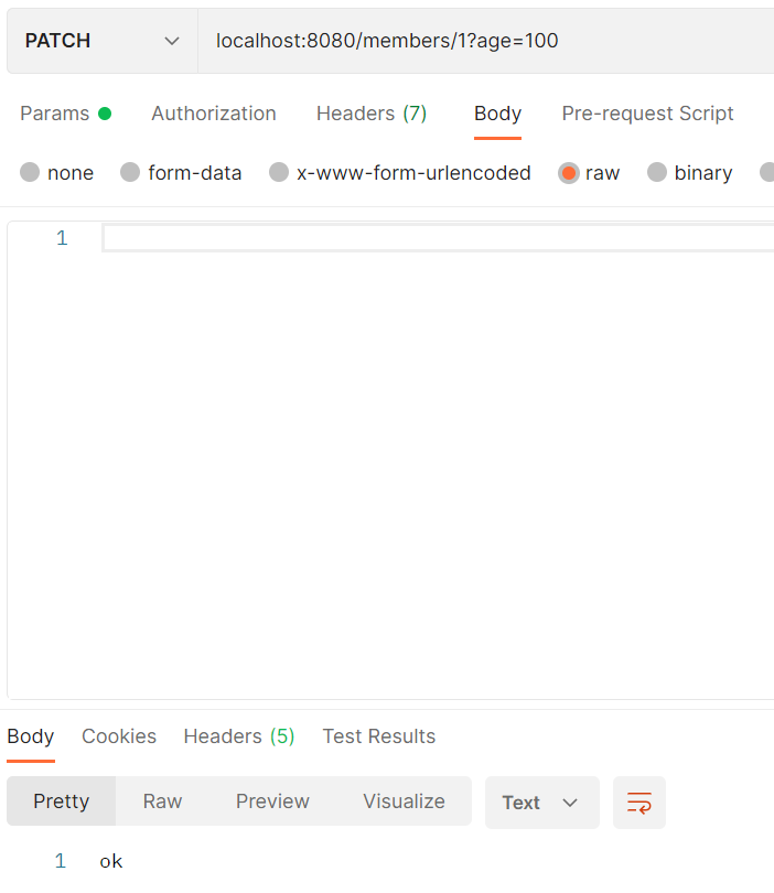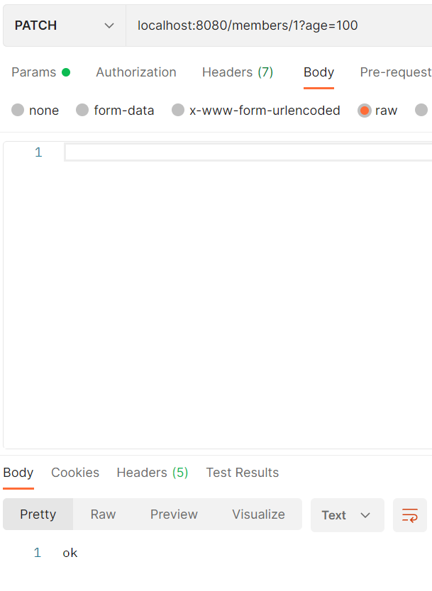이제 id가 1인 멤버의 나이를 100살로 변경해보겠습니다. (성공적으로 변경했습니다.)