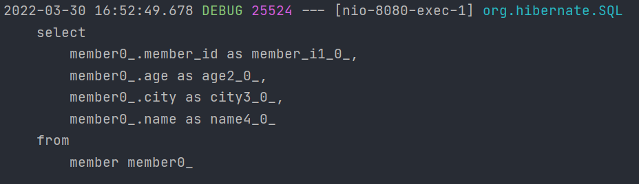 localhost:8080/member 호출 쿼리가 실행됩니다.